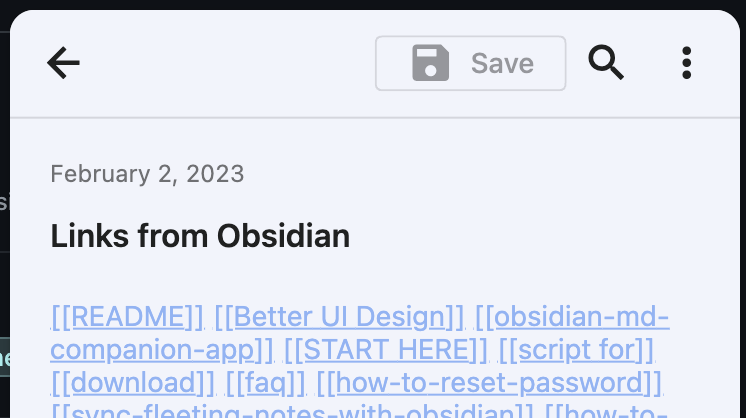 - Once you've enabled it, in Fleeting Notes you should see a new note titled "Links from Obsidian" within the Fleeting Notes app.