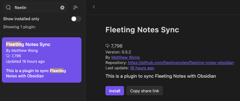 - Checkout how to keep your Obsidian wikilinks synced with Fleeting NotesHow to Sync Obsidian wikilinks into Fleeting Notes1. Install the Obsidian plugin (v0.5.2+)